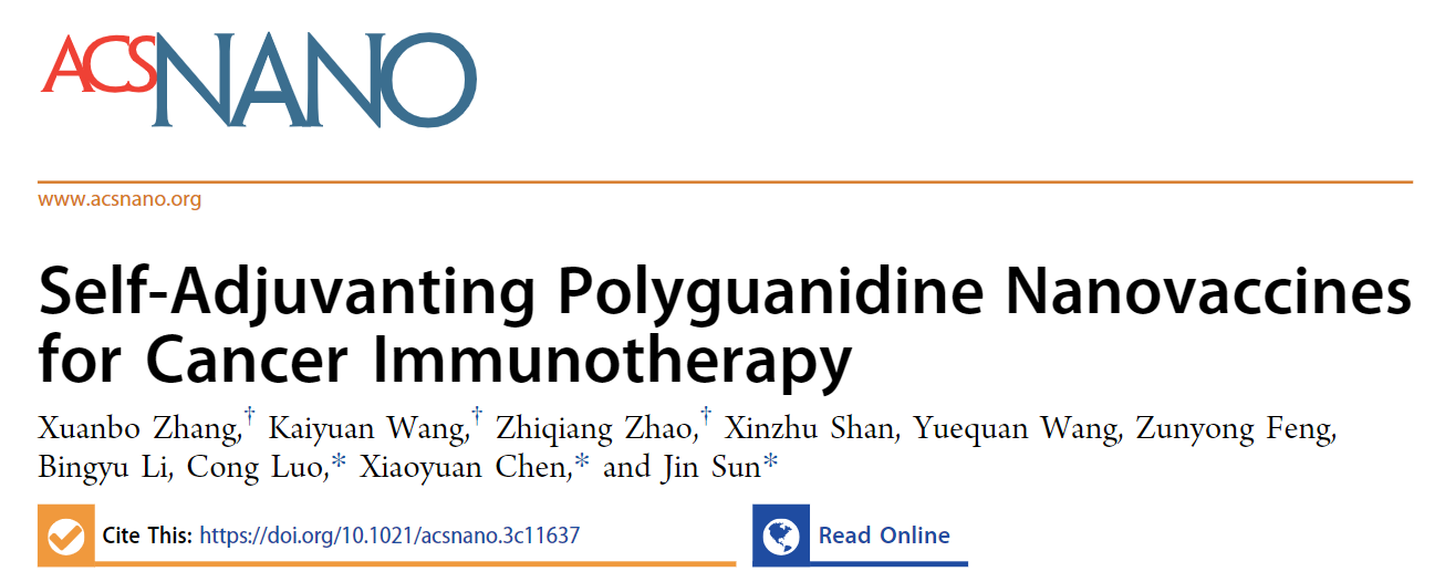 2024年2月26日,bv伟德中国官方网站孙进/罗聪团队在美国化学会旗下期刊《ACS Nano》(IF=17.3)发表题为“Self-Adjuvanting Polyguanidine Nanovaccines for Cancer Immunotherapy”。公司bv伟德孙进教授和罗聪教授,新加坡国立大学陈小元教授为本文通讯作者,博士毕业生张轩博,王开元及2023级博士生赵志强为本文共同第一作者,bv伟德中国官方网站为第一通讯单位。